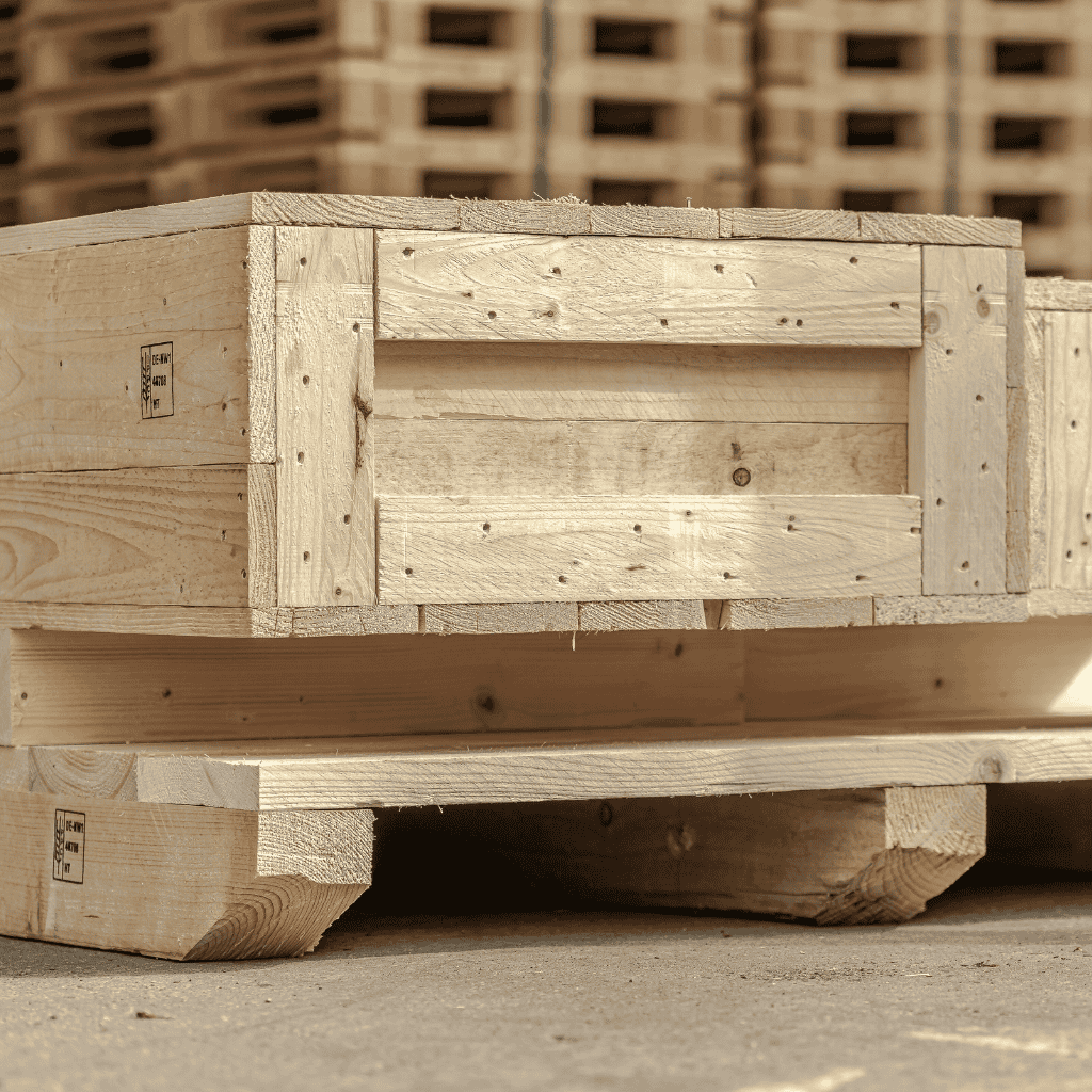 Verstärkte Langlebigkeit: Unsere Holz- und Stahlpaletten sind so konstruiert, dass sie große Lasten tragen können und selbst die schwersten Geräte sicher transportieren.