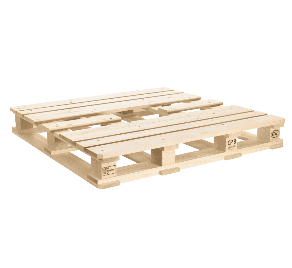 Der Begriff „CP-Palette“ bezieht sich auf Chemikalienpaletten, die ursprünglich für die chemische Industrie entwickelt wurden, heute aber in zahlreichen Branchen weit verbreitet sind. CP-Paletten sind in neun verschiedenen Modellen erhältlich, von CP1 bis CP9. CP8-Paletten sind für den Transport von Big Bags mit Bodenentleerung konzipiert. Sie verfügen über eine Öffnung in der Mitte zur Entwässerung und eine umlaufende Perimeterbasis für zusätzliche Stabilität. Diese Palette umfasst +/- 10 Deckbretter, 12 Klötze und 4 Zwischenbretter, die die notwendige Unterstützung für schwere Lasten bieten.