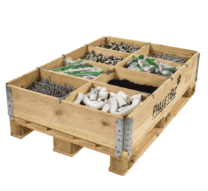 Die EUR-Palette, oft mit den Logos EUR und UIC gekennzeichnet, ist in Konstruktion und Größe (1200 x 800 mm) identisch mit der EPAL-Palette. Diese Paletten werden gemäß UIC-Norm 435-2 hergestellt und bieten die gleiche Qualität und Zuverlässigkeit. Sie sind vollständig austauschbar mit EPAL-Paletten.