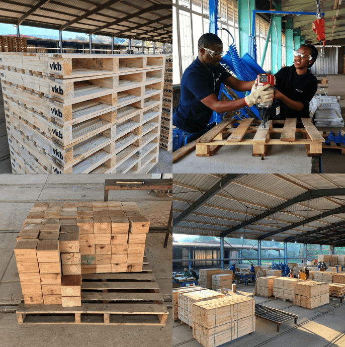 A Sabie létesítmény a WOS (Wood of Sub-Saharan Africa) kategóriából származó feldolgozott faanyaggal együtt különféle fa raklapok gyártására specializálódott. A PalletBiz South Africa a jövőre nézve azt tervezi, hogy tovább bővíti szolgáltatásait további fafeldolgozással, a magasabb minőség és tartósság érdekében a kemencében szárított termékekre összpontosítva.