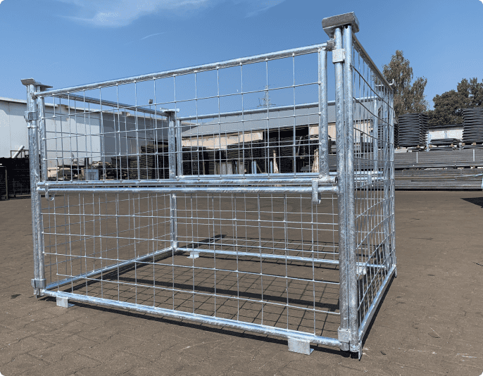 Az Ön specifikációja szerint tervezve és gyártva. A Félmagas gitterboxok kisebb és könnyebb terhelésekhez tervezték, tapssal vagy anélkül. Dróthálóval vagy acélból készült falakkal készülnek, legfeljebb 1500 kg teherbírással.
