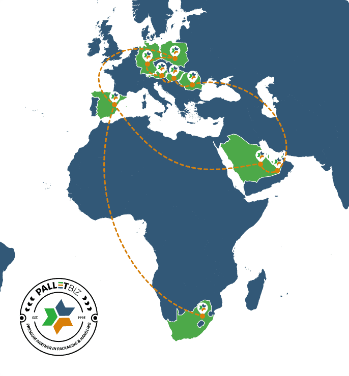 Chociaż PalletBiz nie ma jeszcze formalnej obecności prawnej w krajach takich jak Holandia, Serbia, Włochy, Bułgaria i Francja, ani zakładów produkcyjnych w Hiszpanii i Belgii, nakreśliliśmy ambitny pięcioletni plan ekspansji w celu rozszerzenia naszej sieci. Pomimo obecnego braku lokalnych operacji, jesteśmy w pełni przygotowani do dostarczania najwyższej jakości produktów i usług w tych regionach. Dzięki silnej sieci partnerstw i współpracy (PAP – PalletBiz Approved Partners), PalletBiz zapewnia płynne operacje transgraniczne i efektywne świadczenie usług, pozycjonując nas do wzrostu na tych kluczowych rynkach.