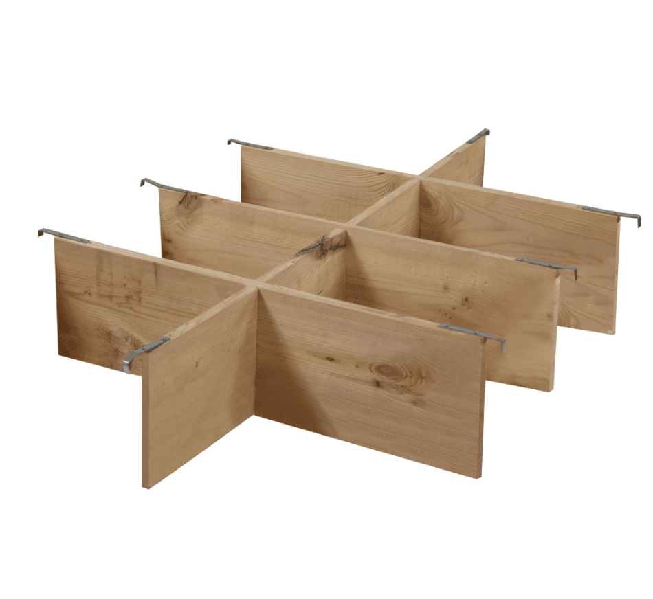 Dividers are wooden planks with metal hooks that can easily be inserted into the pallet with its pallet collar. They serve to create compartments in your packaging and keep the division, storage and movement of small batches of cargo easier. Dividers are a great way to utilize the full space on your pallet, while at the same time keeping cargo well organized and segmented.