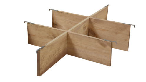 Dividers are wooden planks with metal hooks that can easily be inserted into the pallet with its pallet collar. They serve to create compartments in your packaging and keep the division, storage and movement of small batches of cargo easier.