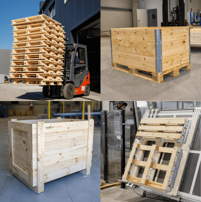 • Ambalaje din Lemn: De la palete standard EUR și CP la cutii și cofraje din lemn personalizate, soluțiile noastre de ambalare din lemn asigură transportul și depozitarea sigură a bunurilor.